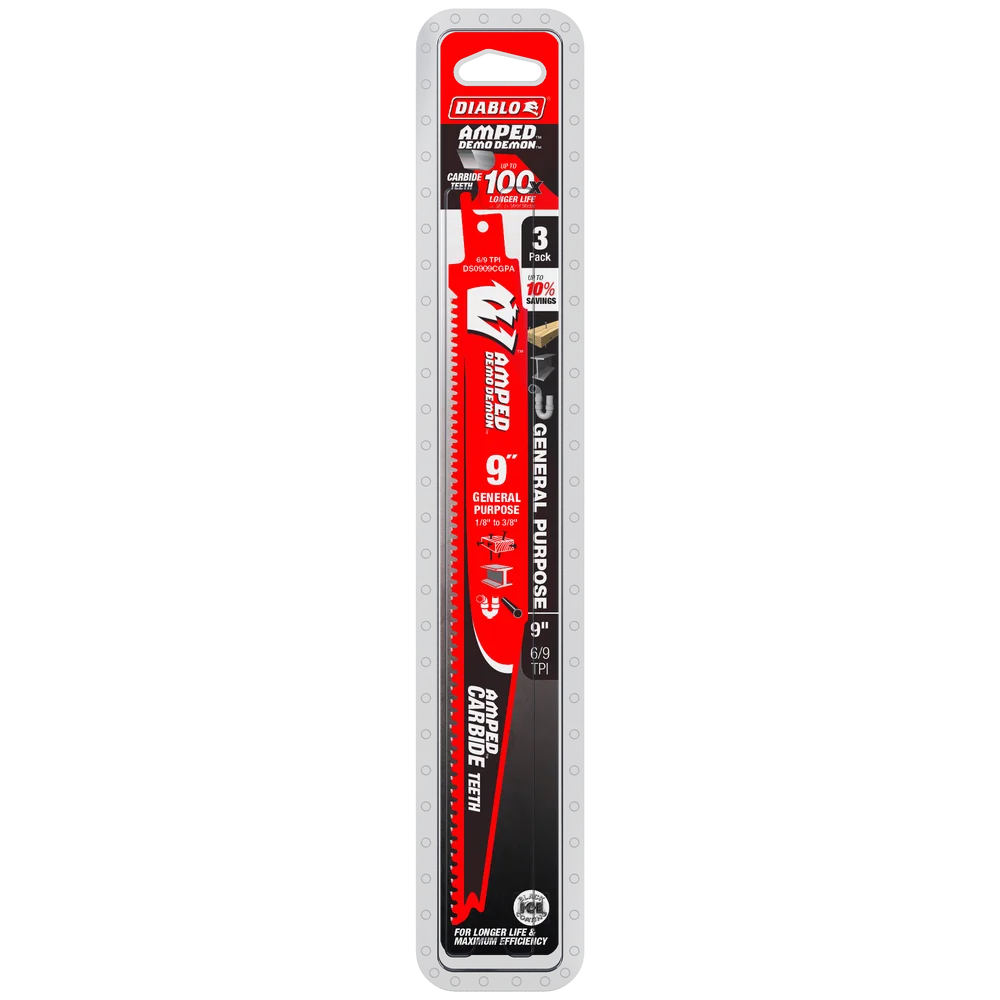 La AMPED DemonDemon 9"(3Pack)General Purpose de DIABLO ofrece resultados exelentes para cortes de uso General , gracias a su revestimiento de Black I.C.E. dandole una vida util de corte 100 veces mayor que las standar . Esta herramienta es ideal para : Madera y Metales con clavos incrustados .