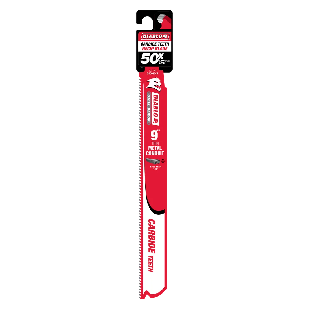 La Carbide Teeth Recip Blade 9" de DIABLO Steel Demon fue disenada especificamente para coductos y Tuberias de Metal. Se aplica en Metales Delgados (menos de 3mm). Es la primera cuchilla con dientes de Carburo.