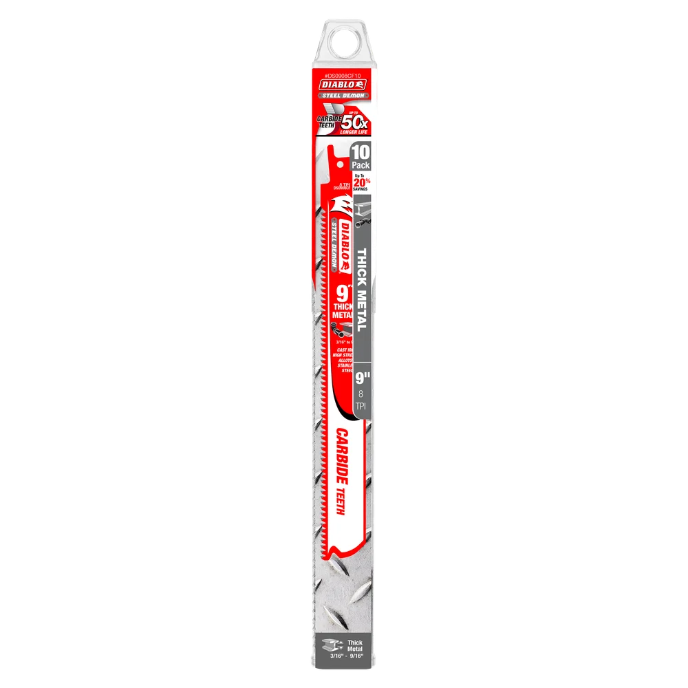 La Carbide Teeth Steel Demon 9" de DIABLO , ofrece cortes superiores y un exelente rendimiento en todas las Aplicaciones de Metal Grueso de 3/16"-9/16" . Paquete de 10. Posee carbide Blade de Alto rendimiento
