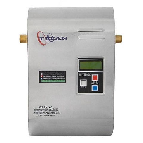 Titan N-160 SCR-3 .Calentador de Agua Electrico sin tanque . Su voltage es de 240V, con 16KW , 66 AMPS Maximo y con un Breaker de 70 AMP, Cable calibre #6 , es un Calentador Economico ya que reduce el costo de Calentamiento de Agua en un 60%.Se recomienda para Casa de 2 1/2 baño con Grandes Cabezas de Ducha , o , Tina o casa con 3 baños standard.No ocupa espacio en el piso.El suministro de Agua cliente es Ilimitado.Posee un Control por Microprocesador Digital .